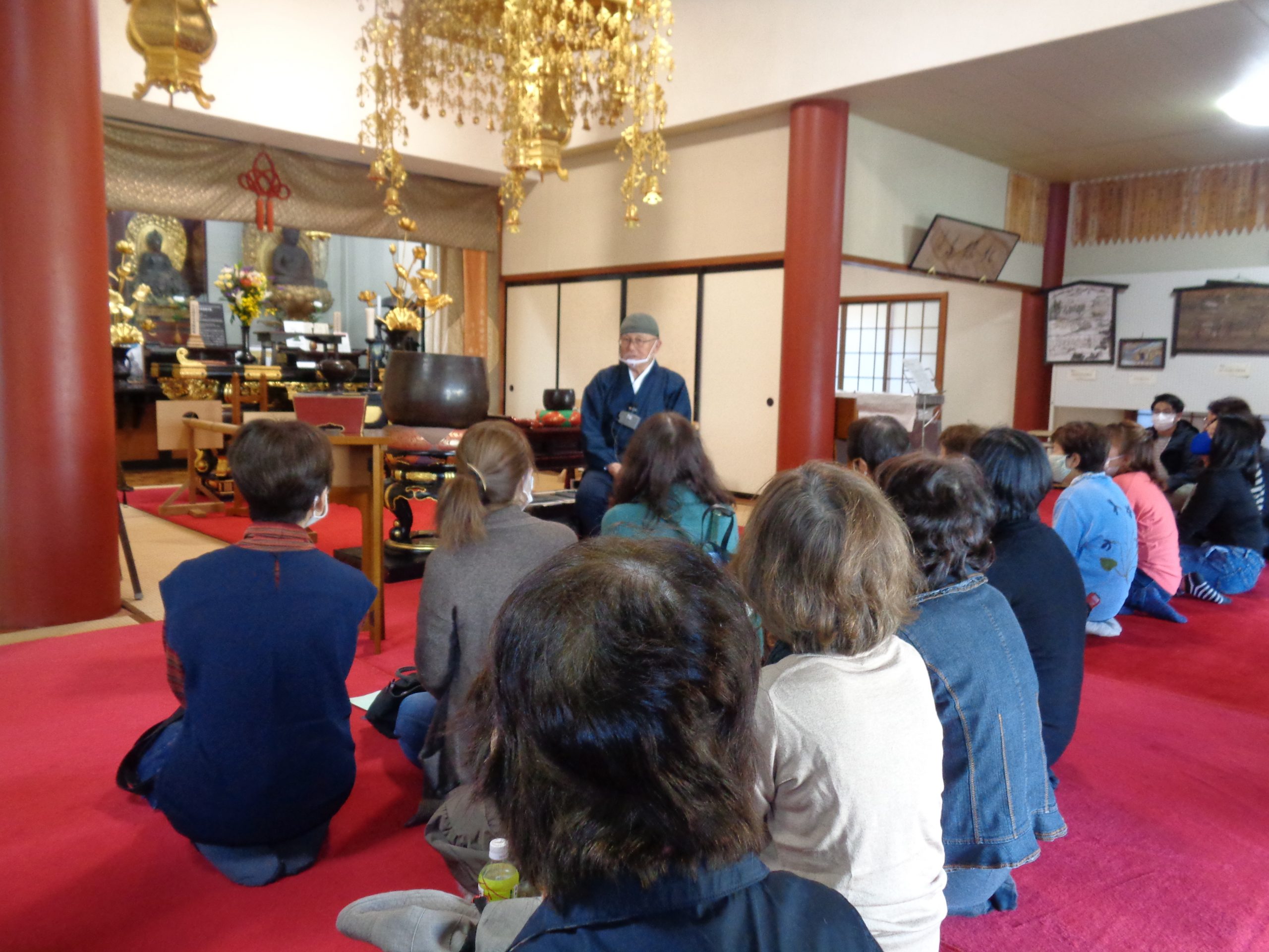 ご住職よりのご説明。この後義時ご夫妻のお墓をお参りしました。